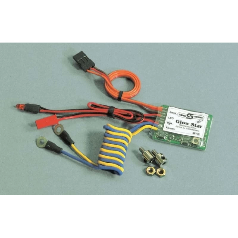 Simprop Glow-star wordt gebruikt voor ondersteuning om de glow plug door te laten glowen bij lage toerentallen van methanol motoren