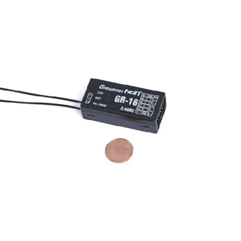 GR 16 HoTT 8 kanaals 2,4 GHz ontvanger van Graupner, deze is geschikt voor telemetrie